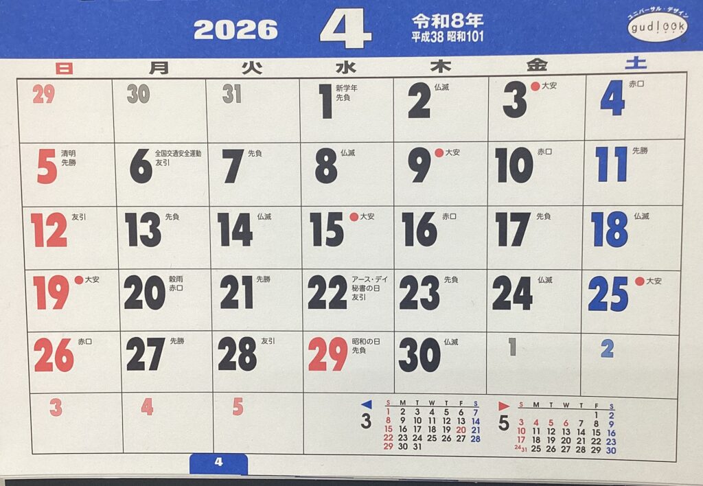 4月営業日のお知らせ